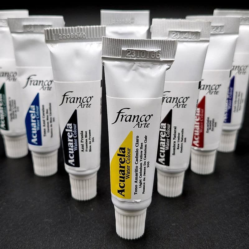 Acuarela en tubo de 15 ml de la marca Franco Arte, formulada con pigmentos concentrados y buena solubilidad en agua. Ofrece colores intensos, mezclas suaves y secado uniforme, ideal para ilustración, paisajes y técnicas húmedas en papel especializado. Su presentación en tubo permite un uso dosificado y mayor rendimiento en aplicaciones amplias o detalladas. Apta para estudiantes y artistas que buscan una acuarela versátil a un precio accesible.