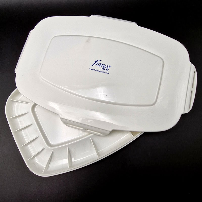 Esta paleta de plástico cuenta con tapa hermética que permite conservar mezclas húmedas por más tiempo, evitando el secado prematuro de pinturas como la acuarela, el gouache o la acrílica. Su interior está dividido en compartimentos que facilitan la organización de colores y la limpieza posterior. Ideal tanto para uso en estudio como para transportar mezclas ya preparadas. Una herramienta práctica para artistas que desean optimizar el manejo del color sin desperdiciar material.