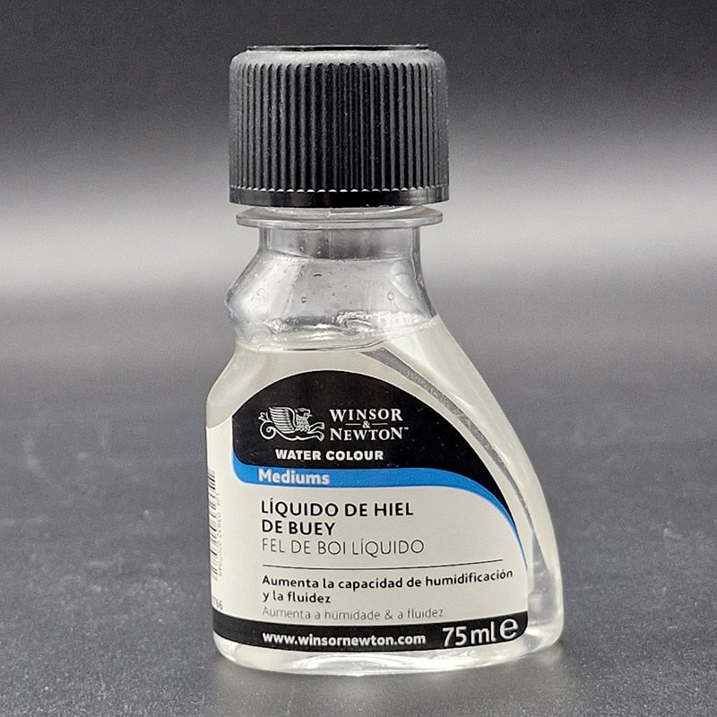 La hiel de buey es un agente humectante que mejora la adherencia y fluidez de la acuarela sobre papeles muy satinados o de baja absorción. Mantiene la calidad profesional, ayudando a que el agua y el pigmento se distribuyan de forma uniforme, reduciendo la formación de charcos y controlando mejor los lavados y veladuras. Se utiliza diluyendo unas gotas en el agua de mezcla o directamente sobre el papel antes de pintar. Es especialmente útil en técnicas de capas suaves, detalles finos o superficies que tienden a repeler el agua.