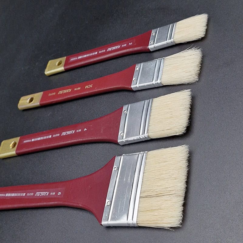 Diseñadas para aplicaciones amplias en técnicas de pintura como óleo y acrílico. Su forma plana permite cubrir superficies con facilidad, trazar bordes definidos y lograr pinceladas expresivas con buena carga de pintura. El mango de madera barnizado ofrece un agarre cómodo y resistente, adecuado para sesiones prolongadas de trabajo. Son una opción práctica y funcional tanto para estudiantes como para artistas que buscan herramientas accesibles para el uso frecuente y prácticas cotidianas.